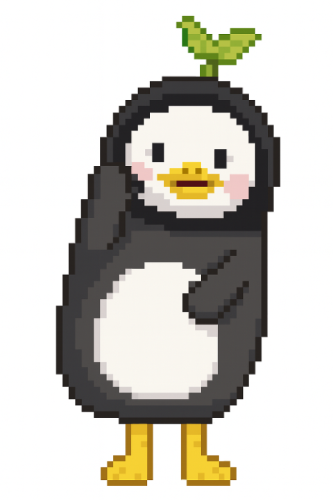 첫 번째 이미지는 펭수입니다. 펭수 이미지를 챗지피티에 요청해서 픽셀 캐릭터로 만들어 보았습니다. 이미지를 다운 받았더니 좀 크더라고요. 배경은 흰색 배경으로 했고, 도트가 보이는 이미지로 변신했습니다.