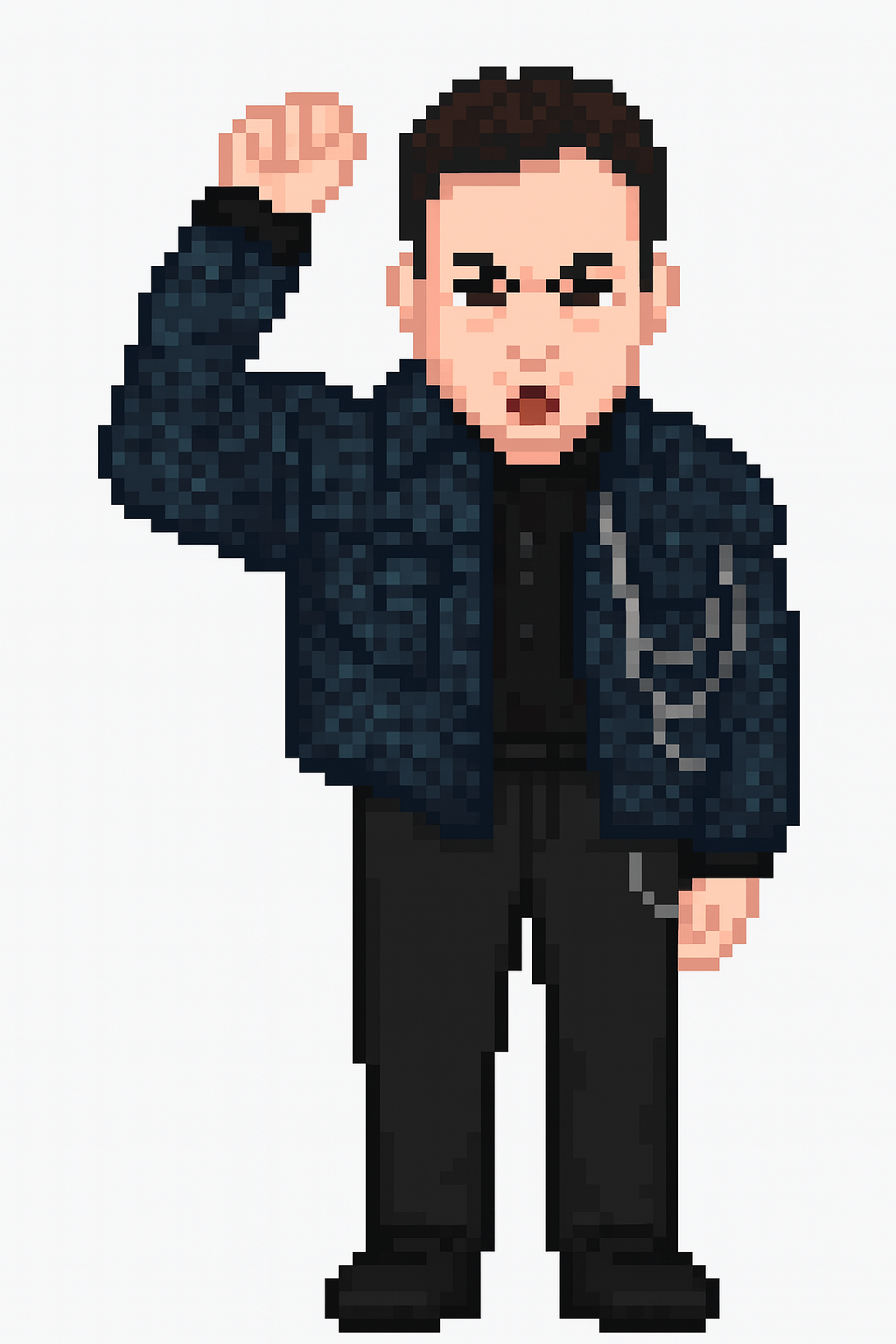 이번에는 박명수를 챗지피티에 업로드하고 픽셀 케릭터를 요청해봤습니다. 화난 얼굴부터 디테일함이 살아있는 이미지가 만들어졌습니다. 재밌네요. 표정이 살아있어요. 옷도 잘 표현해 주었고요. 그런데 프롬프트에 전신 이미지를 요청했더니 없는 하체가 만들어졌습니다.