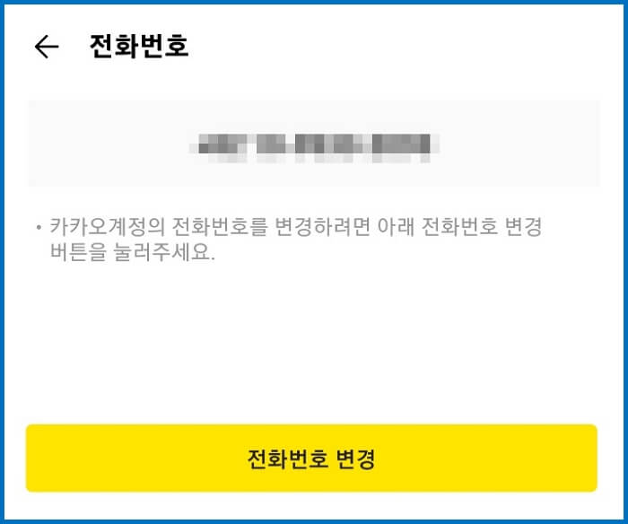 4. 다음 화면에서 전화번호 변경이 써진 노란 버튼을 눌러줍니다.