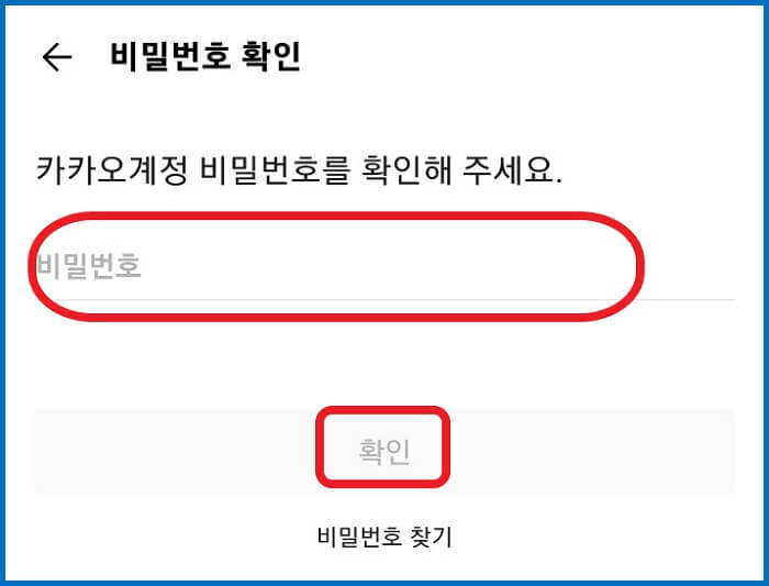 5. 카카오계정 비밀번호를 입력하고 확인을 눌러줍니다.
