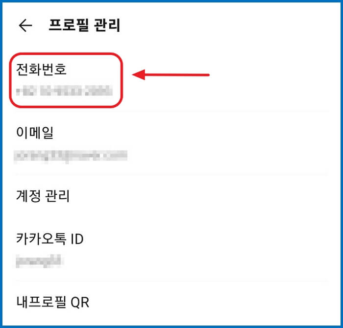 3. 프로필 관리 화면이 뜨면 전화번호를 눌러주세요.
