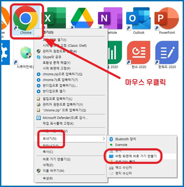 바탕화면에 크롬 바로가기 아이콘을 추가하는 방법입니다.