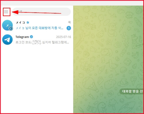 PC 데스크탑에서 먼저 시작해보겠습니다. 좌측 상단의 햄버거 아이콘 ( 줄 세개 ) 를 누릅니다. 그 다음 나오는 화면에서 그룹 만들기 버튼을 눌러줍니다.