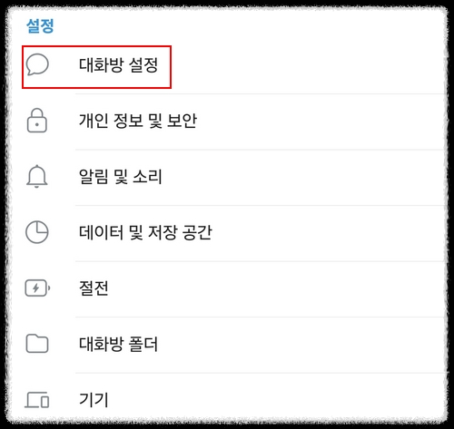 3. 설정을 누르셨다면 이번에는 대화방 설정을 찾아서 눌러주세요.