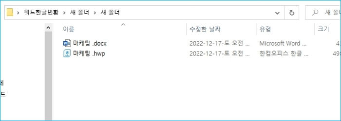 파일이 변환된것이 보이시나요? HWP 한글 파일을 워드 파일로 변환이 되었습니다. 여기까지입니다. 설명은 길었지만 전부 간단한 방법들이니 편하신 방법을 선택해서 직접 해보시기 바랍니다.